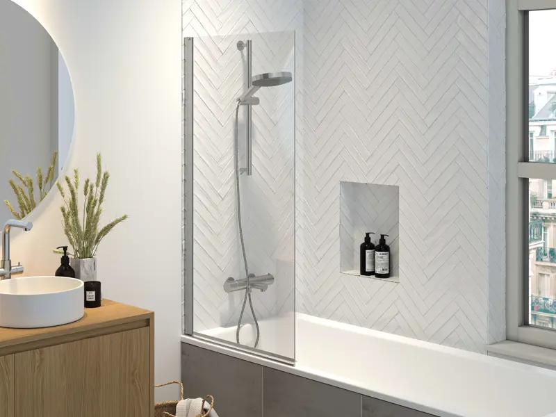 Die 75 cm lange Badewannenwand aus der Serie Hooked zeichnet sich durch ihre Pflegeleichtigkeit aus. Das 6 mm starke, klare Sicherheitsglas ist mit einer Anti-Kalk-Beschichtung versehen, so dass das Glas länger klar bleibt. Die Badewannenwand lässt sich nach innen und außen öffnen, was den Ein- und Ausstieg erheblich erleichtert. Mit Hooked ist der Komfort zum Greifen nah.