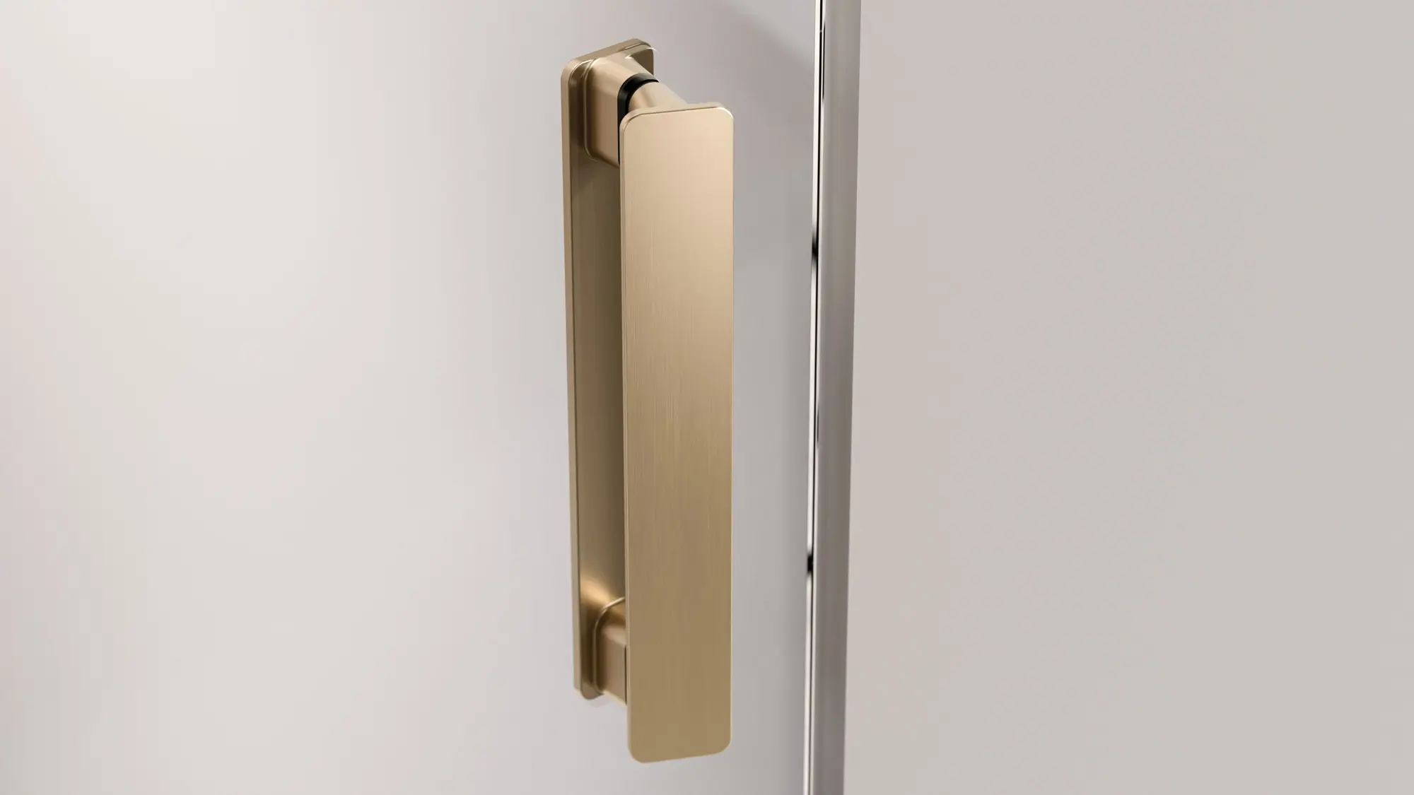 The door handle is at an angle on the door. This makes it more pleasant to use and, at the same time, we were able to keep the design minimalist. Our cabins are fitted with safety glass that meets the highest quality and required standards (EN12150/EN14428).