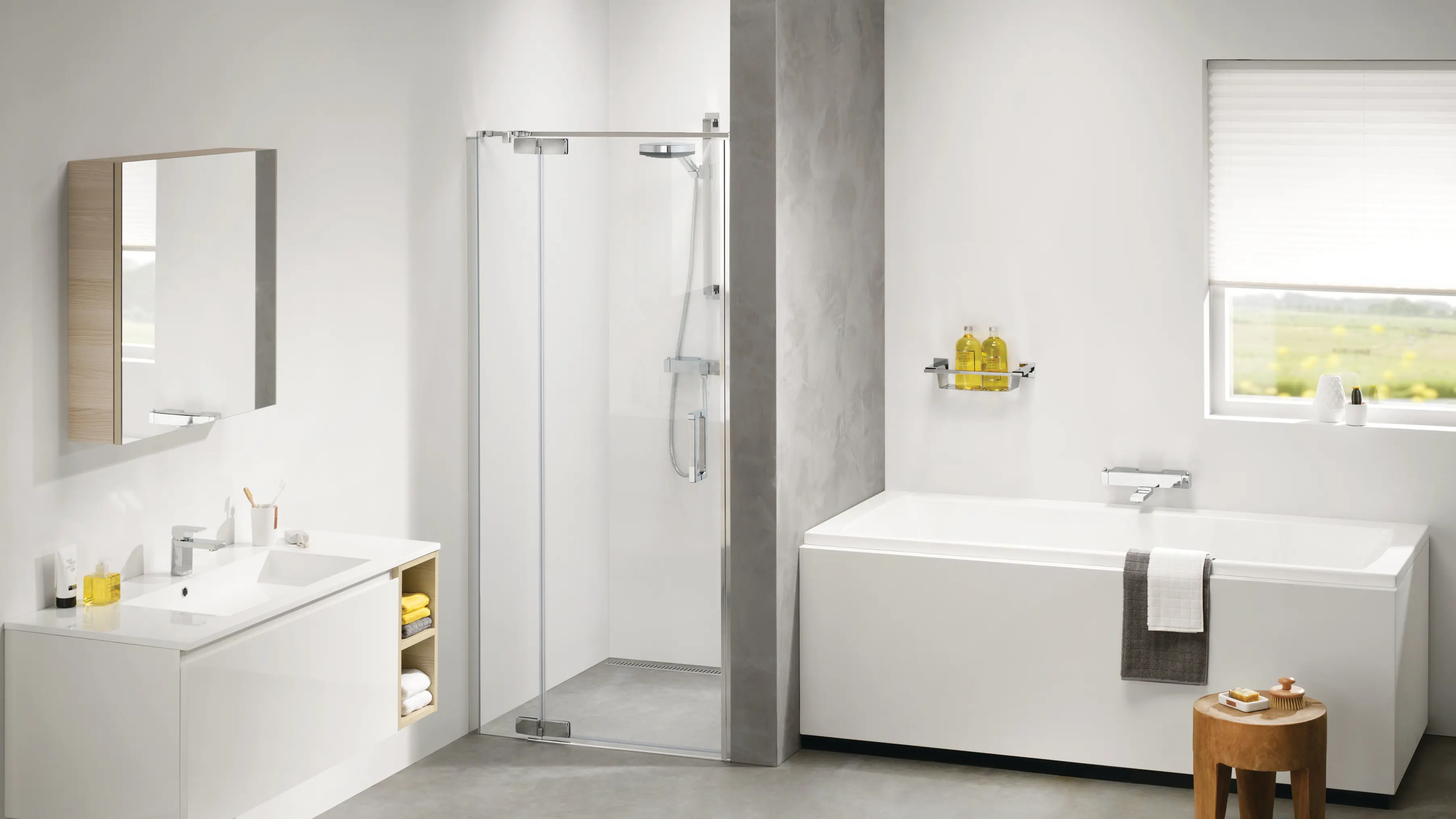Les magnifiques douches Custom sont conçues avec attention et amour pour les moindres détails. Il s'agit d'une ligne de haute qualité qui s'intègre parfaitement dans les salles de bains modernes et élégantes. Et vous pouvez personnaliser votre Custom : Vous disposez d'accents chromés et blancs en standard. Vous décidez du style qui vous convient. Vous pouvez même concevoir vos propres accessoires et les faire imprimer en 3D.