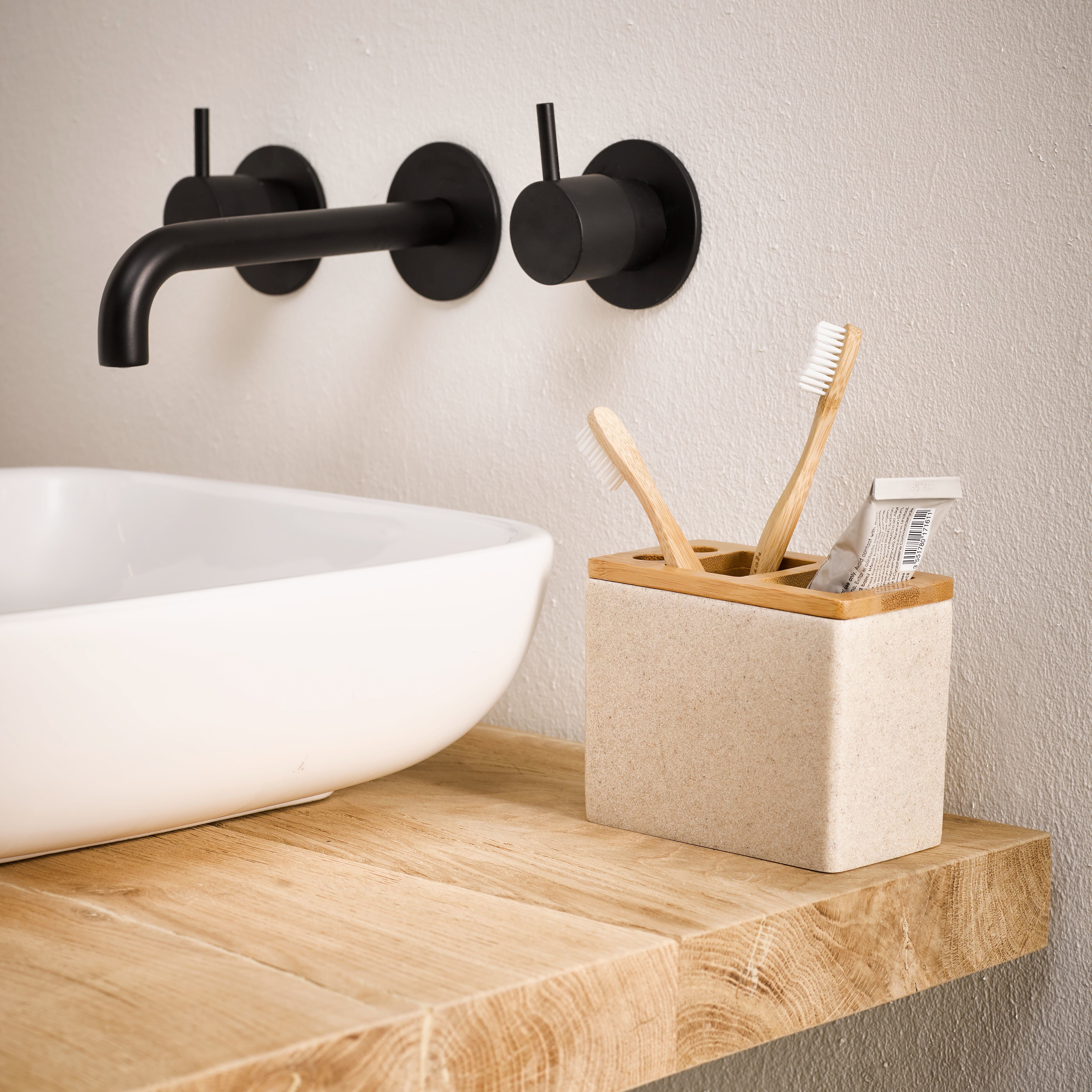 Het sleutelwoord bij het creëren van een Japandi badkamer is minimalisme. In plaats van verschillende accessoires te combineren, draait het bij deze stijl om eenvoud. Begin je badkamerontwerp daarom met strakke lijnen, eenvoudige vormen en neutrale kleuren. In een Japandi badkamer zie je vaak rustige, beige tinten. Het gebruik van beige is ook nog eens heel praktisch, aangezien deze kleur gemakkelijk te combineren is. Denk aan combinaties met zwart, wit of juist andere tinten beige. Onthoud: Less is more!