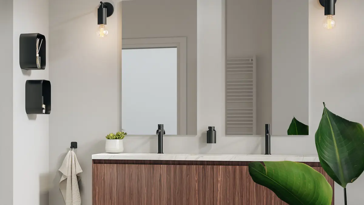 Door de rustige kleurtonen in de badkamer kun je de echte 'eyecatchers' meer naar voren laten komen. Zo kan je vrijstaand bad er uitspringen, maar ook je accessoires, douchecabine of badkamermeubel. Zeker als je een contrasterende kleur gebruikt ten opzichte van de achtergrond.