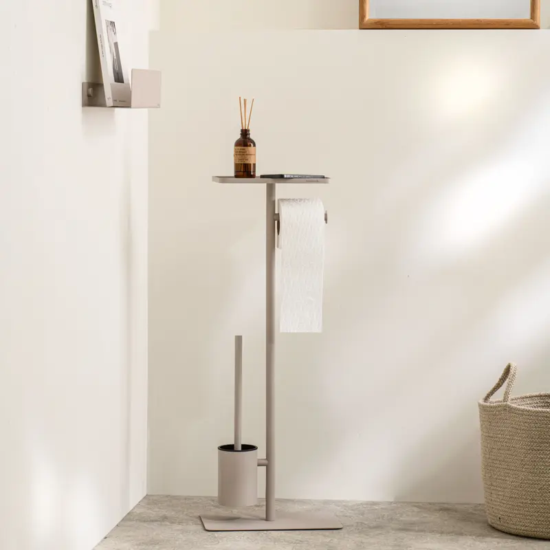 De toiletbutler met geïntegreerde borstelhouder en handig planchet: perfect om je essentials stijlvol binnen handbereik te houden.