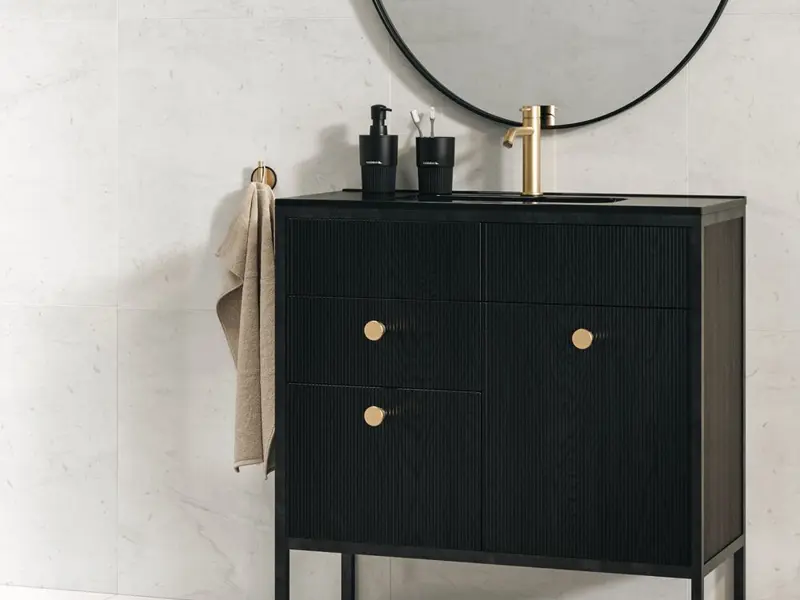 Marmer, zwart en hout maak je ronduit vrouwelijk door te combineren met een warme roze kleur, mooie handdoeken en elegante accessoires. Toch kun je met dezelfde basis prima uit de voeten als het wat stoerder mag. Vervang die roze wand voor stijlvol antraciet en kies voor een strakke lamp, een zwart kleed en bijvoorbeeld een kamerplant in de badkamer. Deze details dragen ook zeker bij aan de gehele look & feel van je badkamer. Je zult zien dat je niet je hele badkamer hoeft te vervangen om toch een compleet nieuwe sfeer te creëeren.