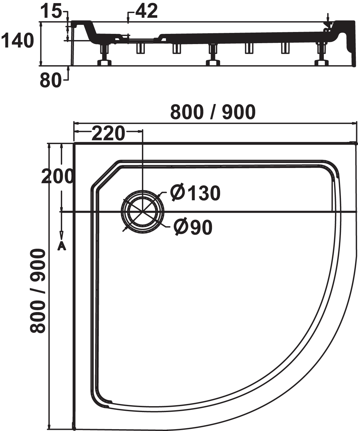 douchebak kwartrond opbouw