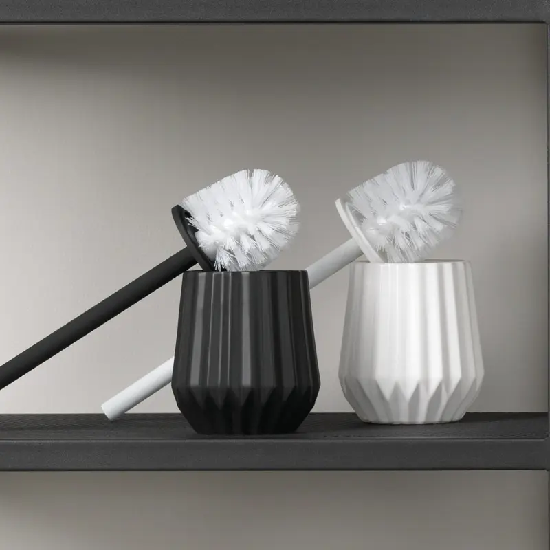 De Sealskin Arte serie is een echte blikvanger. De geometrische vormen passen goed in de moderne badkamer of het toilet. De serie bestaat uit tandenborstelbekers, toiletborstels met houders en zeepdispensers. Deze accessoires zijn verkrijgbaar in het zwart en wit.
