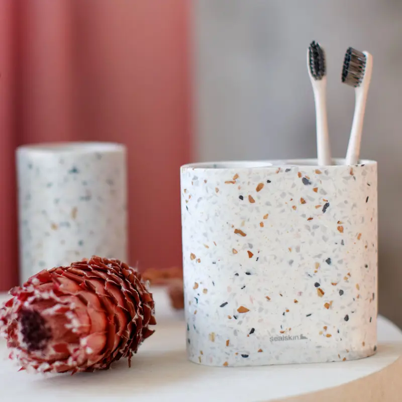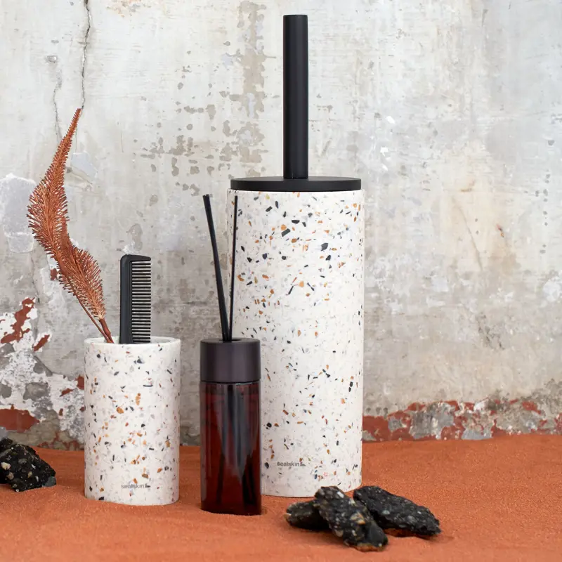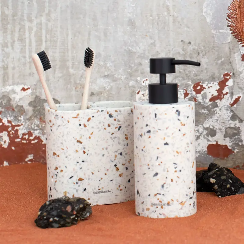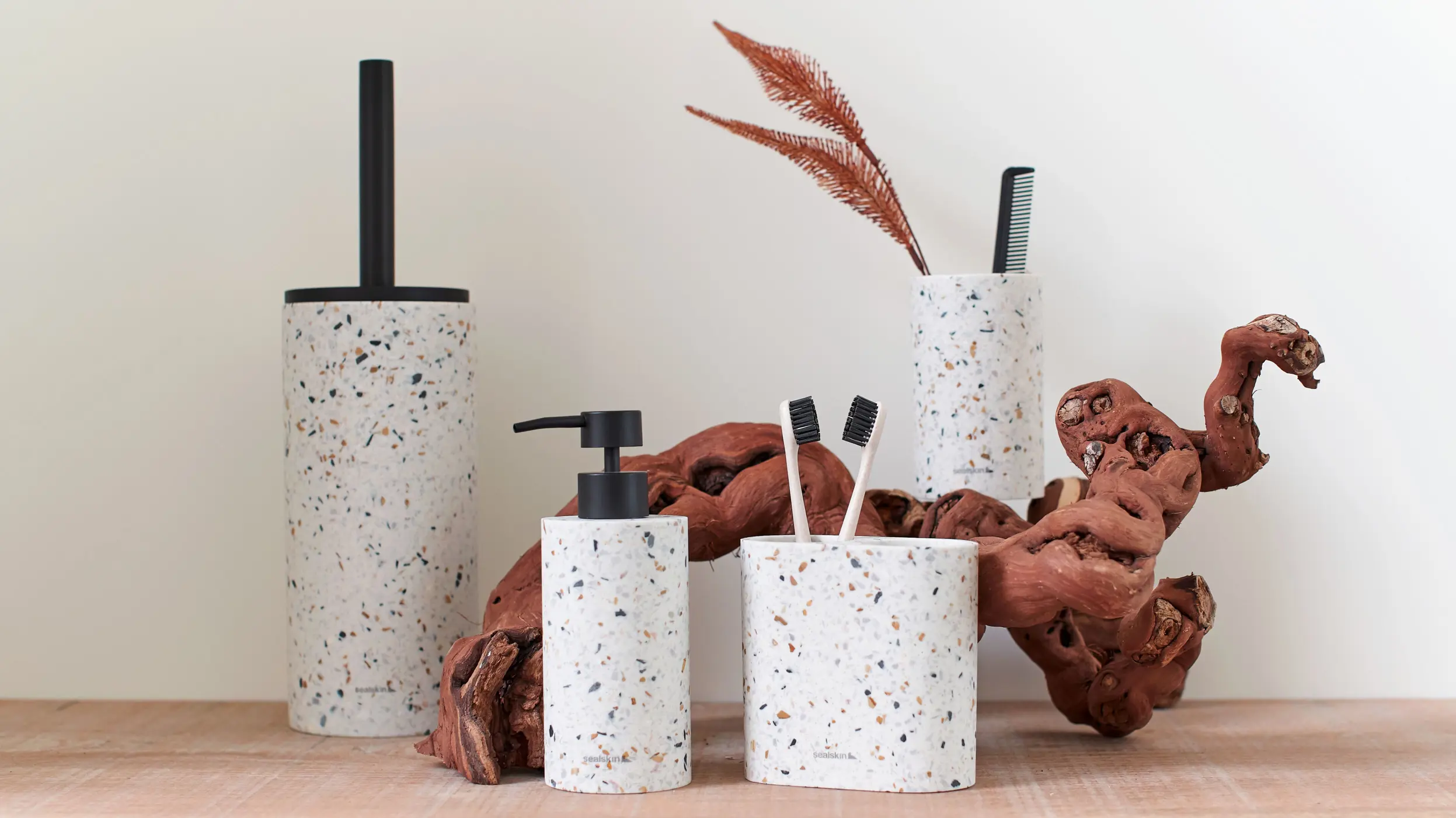 De nieuwe Blend serie biedt je accessoires in de Italiaanse terrazzo look and feel. Het gekleurde terrazzomotief uit de jaren’30 zorgt voor een stijlvolle en authentieke badkamersfeer, die helemaal past binnen de trends van nu. Zowel een toiletborstelhouder, als een zeepdispenser, beker en een tandenborstelhouder zijn uitgevoerd in terrazzo.