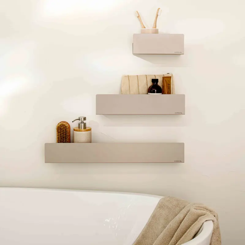 Denk aan planchets, wandrekken en accessoires die combineren opbergen met styling. -