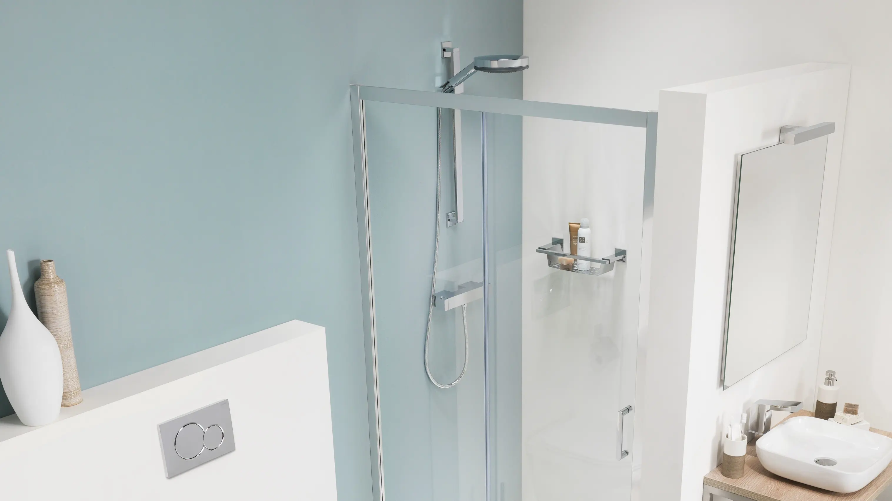 - Een schuifdeur maakt een brede douche mogelijk zónder dat je ruimte nodig hebt voor een draaideur.