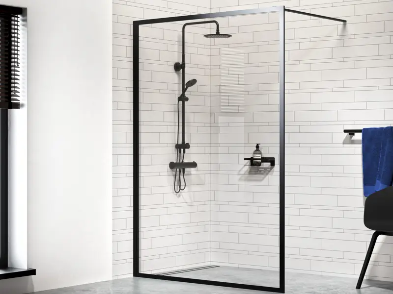 De inloopdouche type A3 van de Contour-serie maakt echte klasse bereikbaar voor iedereen. Het strakke kader rondom het veiligheidsglas geeft deze douchewand zijn unieke uitstraling. Het 6 mm dikke veiligheidsglas is voorzien van een antikalklaag, waardoor je douche langer helder blijft. De stabilisatiesteun van 1 meter is tot iedere gewenste lengte in te korten en zelfs onder een hoek te monteren. Zo past je Contour inloopdouche vrijwel altijd. De stoere matzwarte afwerking zorgt voor een fraai design statement in iedere badkamer.