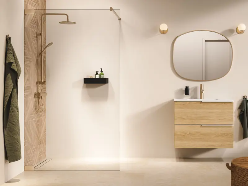 Geef extra comfort aan je badkamer met de Sealskin Pure inloopdouche. Deze douchewand van 200 cm hoog biedt maximale transparantie met verfijnde details. De hoogwaardige RVS-bevestigingen zorgen voor een vlakke verbinding met het 8 mm dikke veiligheidsglas dat behandeld is met antikalk-coating. Zo blijft het glas helder en is het makkelijk te drogen na het douchen. Wie wil dat nou niet? De inloopdouche wordt geleverd met een stabilisatiesteun die onder iedere hoek of haaks op het glas te plaatsen is. Het aluminium middeldeel is ook eenvoudig in te korten met een ijzerzaag. De stabilisatiesteun en de glasklemmen zijn subtiel uitgevoerd in de kleur geborsteld goud. Dit geeft je badkamer een luxe uitstraling.