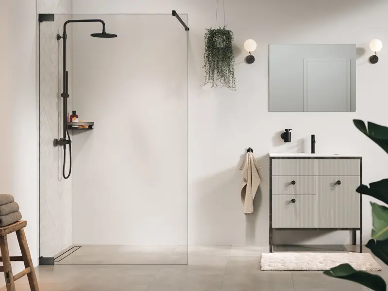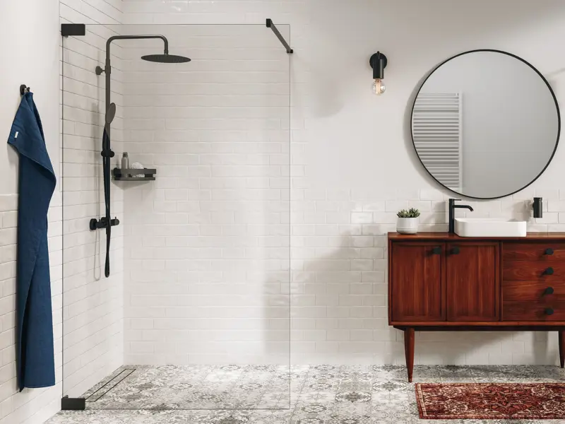 Geef extra comfort aan je badkamer met de Sealskin Pure inloopdouche. Deze douchewand van 200 cm hoog biedt maximale transparantie met verfijnde details. De hoogwaardige RVS-bevestigingen zorgen voor een vlakke verbinding met het 8 mm dikke veiligheidsglas dat behandeld is met antikalk-coating. Zo blijft het glas helder en is het makkelijk te drogen na het douchen. Wie wil dat nou niet? De inloopdouche wordt geleverd met een stabilisatiesteun die onder iedere hoek of haaks op het glas te plaatsen is. Het aluminium middeldeel is ook eenvoudig in te korten met een ijzerzaag. De stabilisatiesteun en de glasklemmen zijn uitgevoerd in de kleur mat zwart. Een stoere afwerking die goed te combineren is met talloze badkamerstijlen.