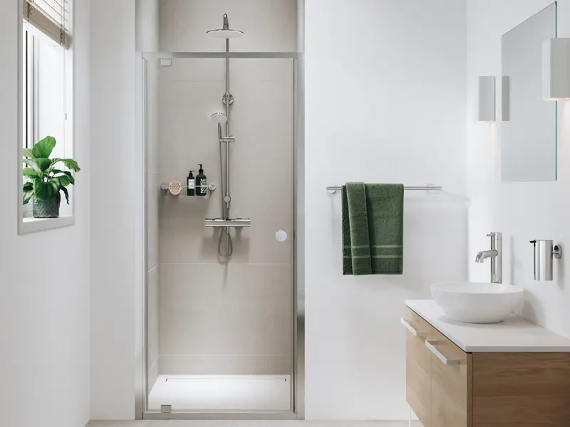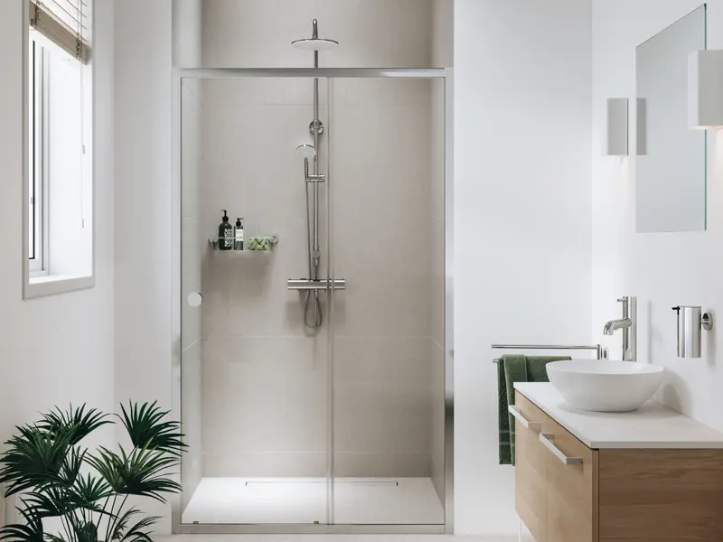 Met deze schuifdeur uit de Seev serie ben je slim bezig! Hij past namelijk perfect in een nis van 116-120 cm of kun je combineren met een zijwand. Door het solide raamwerk blijft jouw doucheruimte waterdicht en dat is wel zo prettig. Bovendien is de schuifdeur ideaal voor kleine badkamers, omdat hij weinig ruimte inneemt. Ook het onderhoud is super eenvoudig, aangezien je het schuivende deel gemakkelijk kunt losklikken. De douche is gemaakt van 6 mm dik veiligheidsglas en heeft een tijdloze zilver hoogglans afwerking. Dus, waar wacht je nog op? Tover jouw badkamer om tot een eigentijdse en stijlvolle ruimte met de Seev schuifdeur!