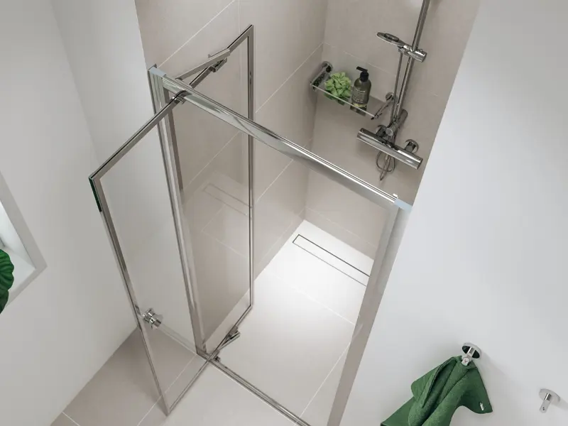 Creëer meer ruimte in je badkamer met deze unieke douchedeur! Plaats hem eenvoudig in een nis om de warmte in de douche te houden. Het bijzondere aan deze deur is het speciale draai-/schuifmechanisme waarmee je veel ruimte bespaart. Er blijft namelijk wat ruimte tussen de geopende deur en de muur, waardoor je bijvoorbeeld handdoeken of andere accessoires kan ophangen. Ideaal voor kleinere badkamers! Het raamwerk rondom de deur zorgt ervoor dat het douchewater ín je doucheruimte blijft. De douche is daarnaast gemaakt met 6 mm dik veiligheidsglas en heeft een tijdloze zilver hoogglans afwerking.